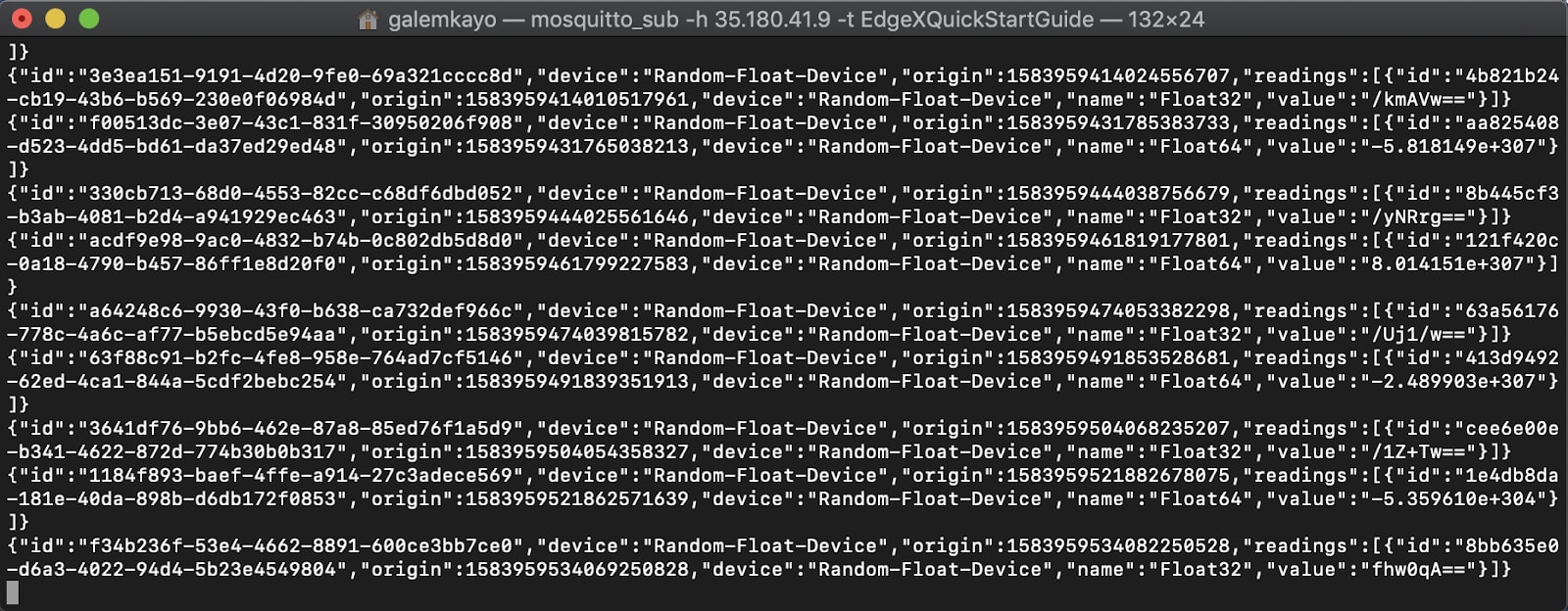 当然,你也可以在终端查看虚拟物联网数据流。流与虚拟设备产生的数据的响应,格式为导出服务指定的格式。如下图: